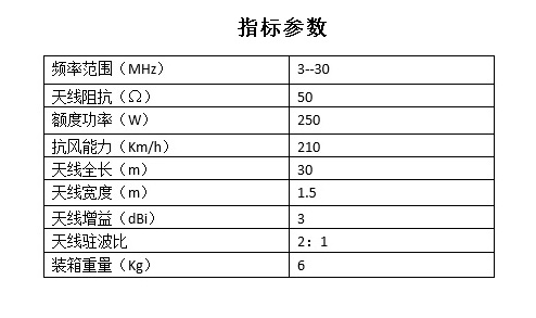 天線展開為長30m,寬1.5m,架設(shè)場地在斜拉全向輻射時為至少18m寬度的無干擾開闊地點;水平架設(shè)時至少要求30m寬度的無干擾開闊地。