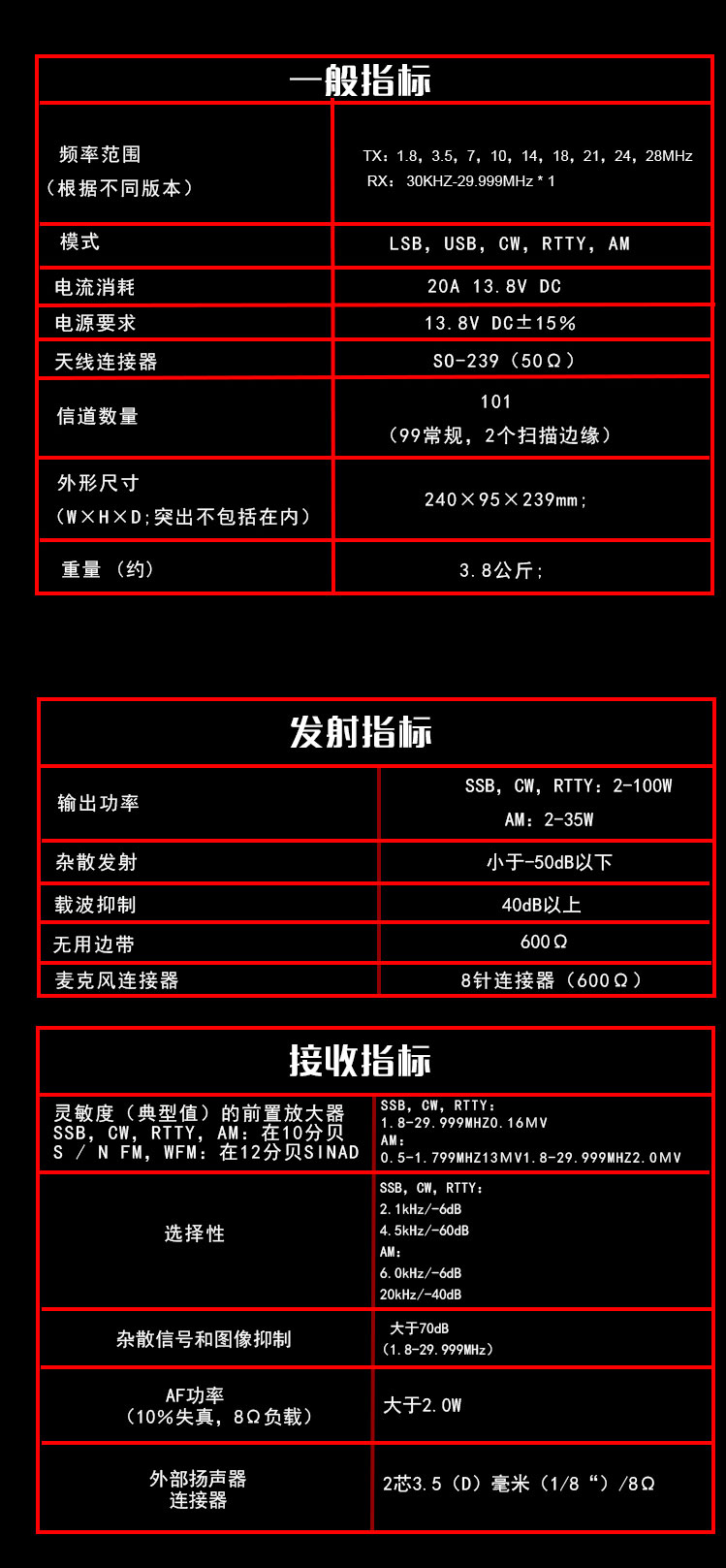 100W發(fā)射功率,大調諧旋鈕頻率調諧旋鈕手感好,可以快速選擇頻率,在不用時可以鎖定不用。加厚鋁板,比普通的車載臺加厚1倍,屏蔽效果好,抗干擾,散熱性能提升。