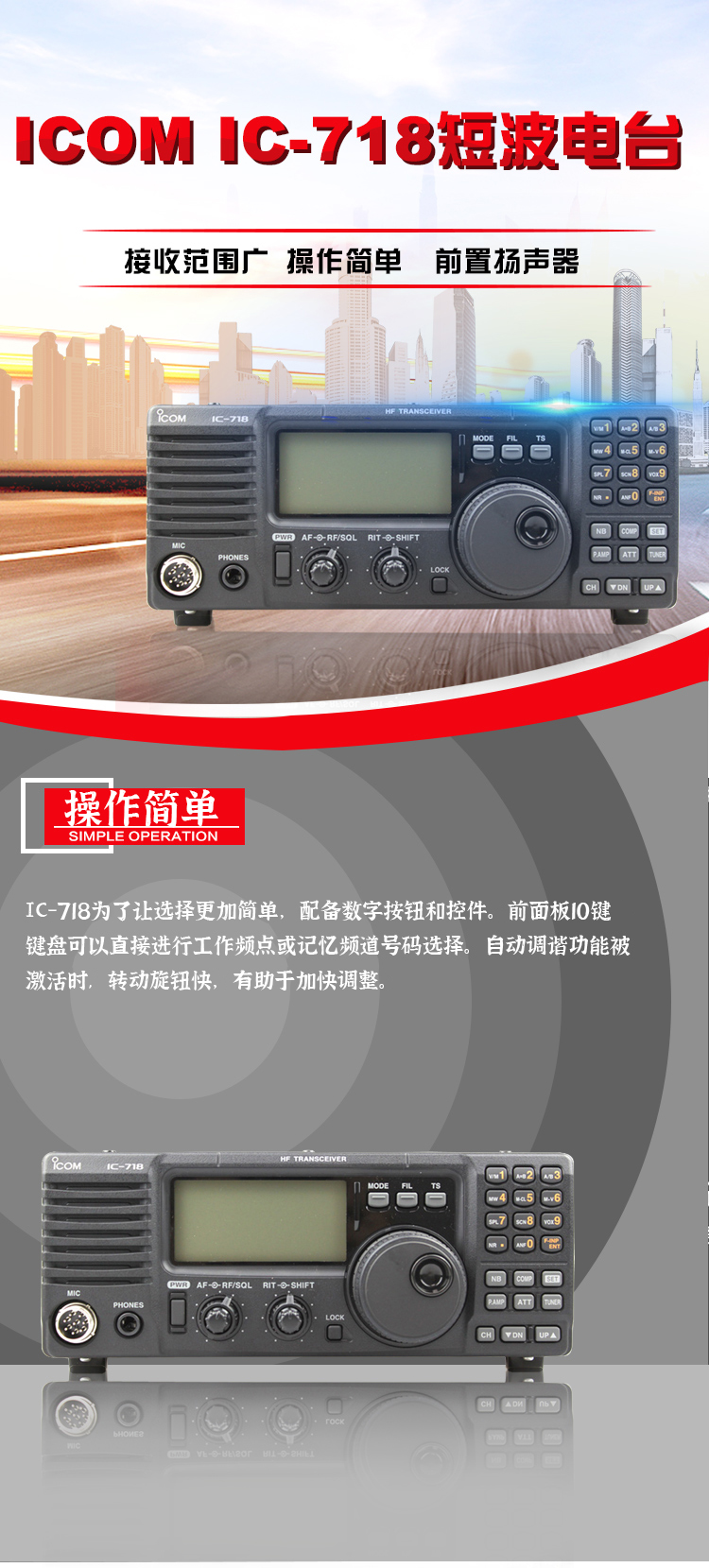 您當前的位置: 首頁 > 產(chǎn)品中心 > ICOM艾可慕 IC-718業(yè)余短波電臺