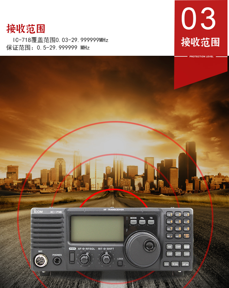 3 接收范圍  IC-718覆蓋范圍0.03-29.999999MHz  保證范圍0.5-29.999999MHz