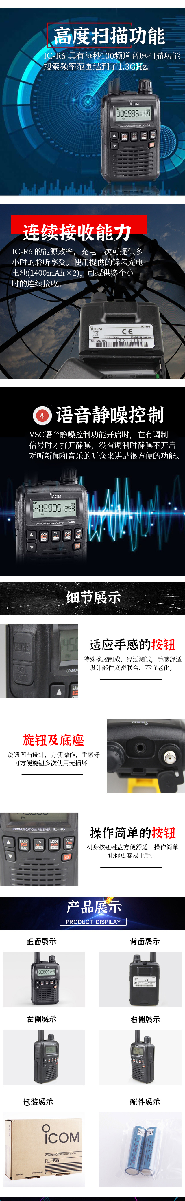 ICOM艾可慕IC-R6手持式接收電臺