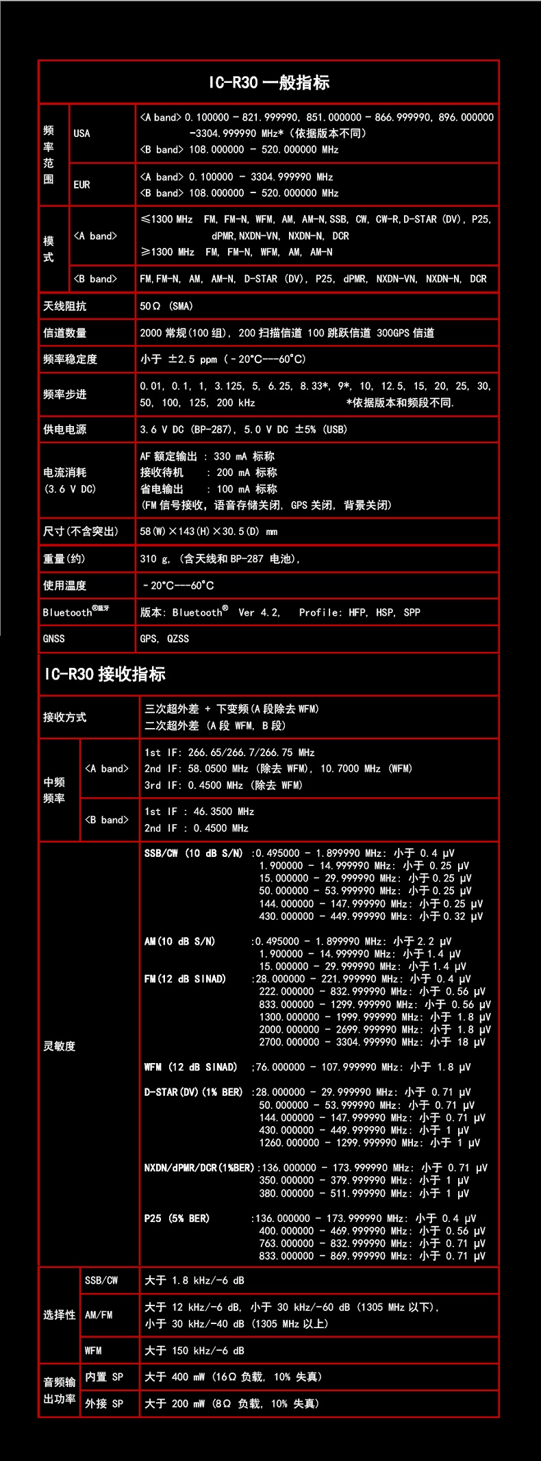 IC-R30覆蓋了從0.13304.999MHz的款頻率范圍,并且接收系統(tǒng)的模擬信道,如AM FM WFM USB LSB CW以及數(shù)字模式.