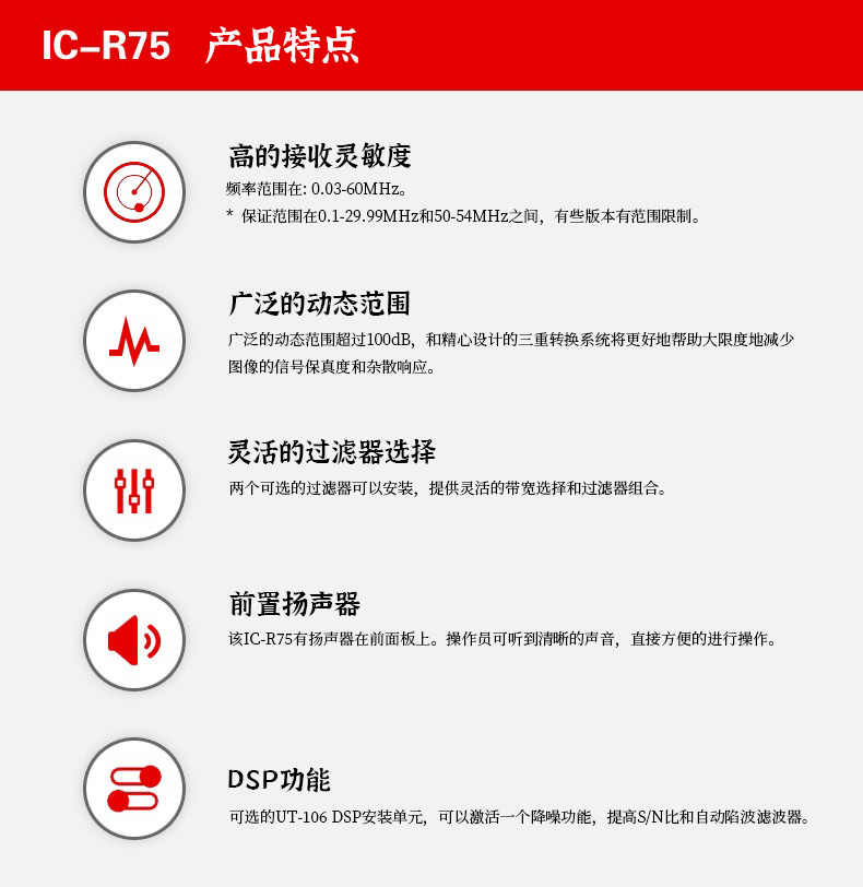 您當(dāng)前的位置: 首頁 > 產(chǎn)品中心 > ICOM艾可慕IC-R75短波臺式接收機(jī)