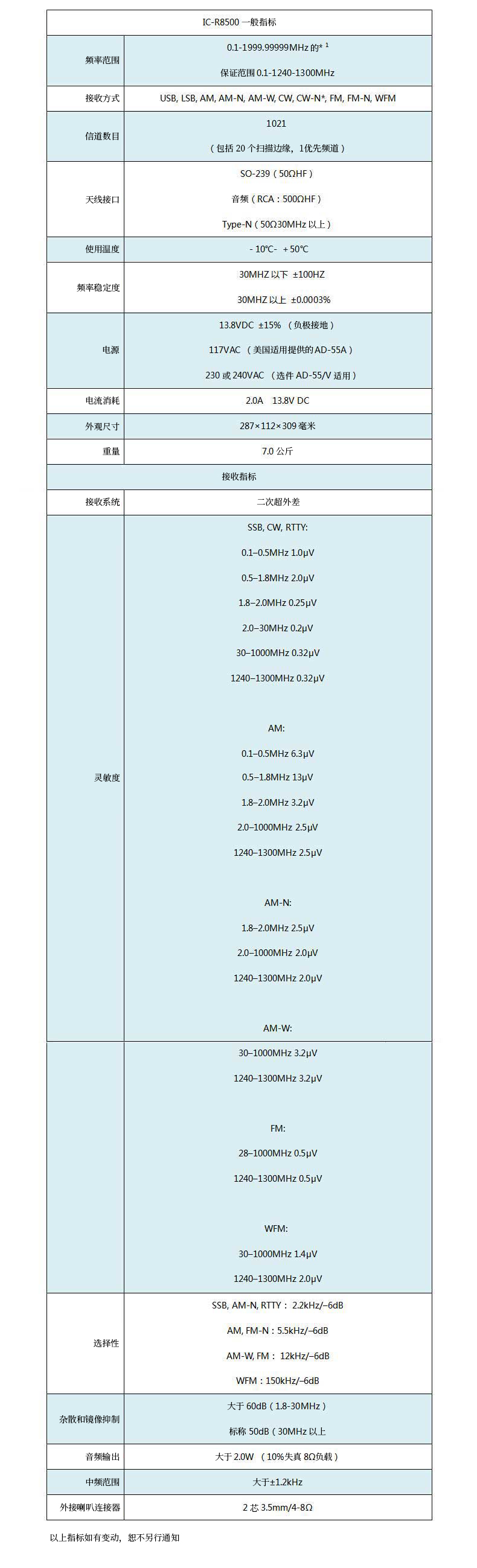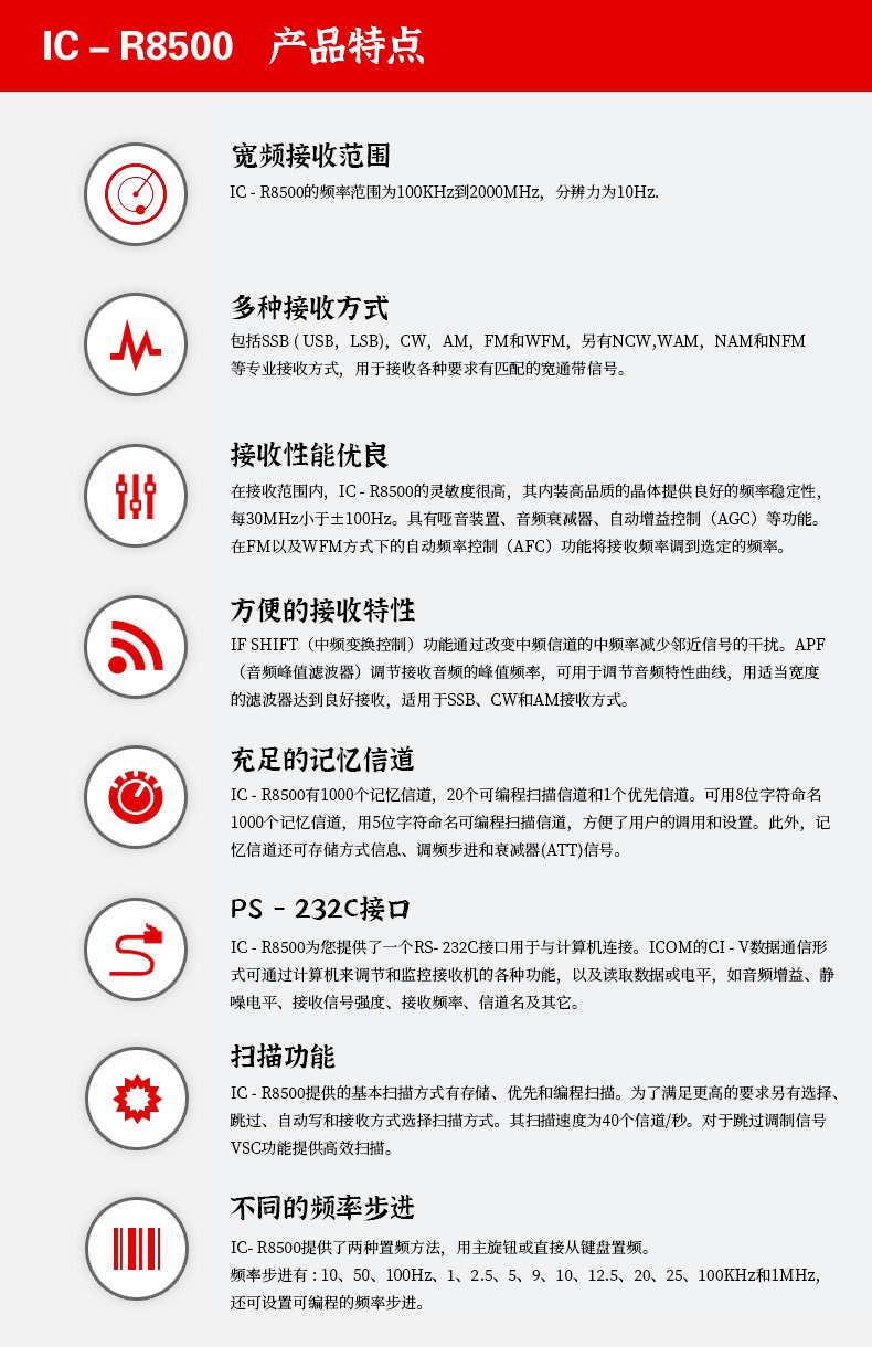• 產品型號:IC-R8500