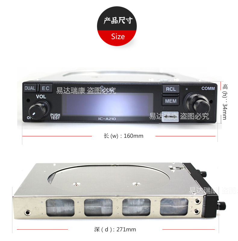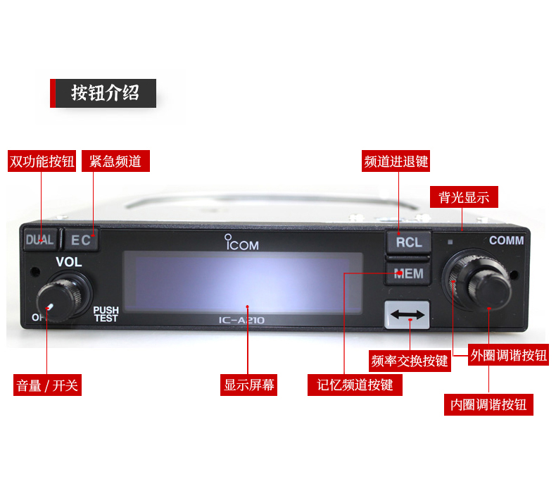航空頻段通信臺具有雙頻率窄面板顯示,配件全可移動固定插入安裝方式,白光字符顯示,自動靜噪,12V/24V DC供電,內置對講功能側音功能。