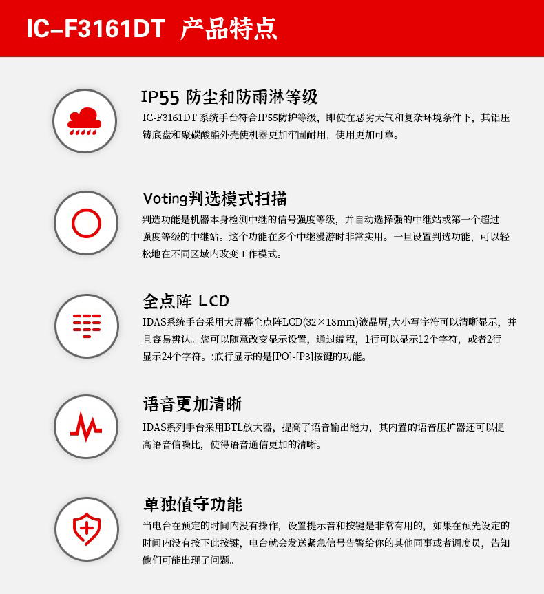 數(shù)字普通對(duì)講機(jī) 數(shù)字防爆對(duì)講機(jī) IP55防護(hù)等級(jí) 全點(diǎn)陣LCD 獨(dú)立職守功能 VOTING判選功能