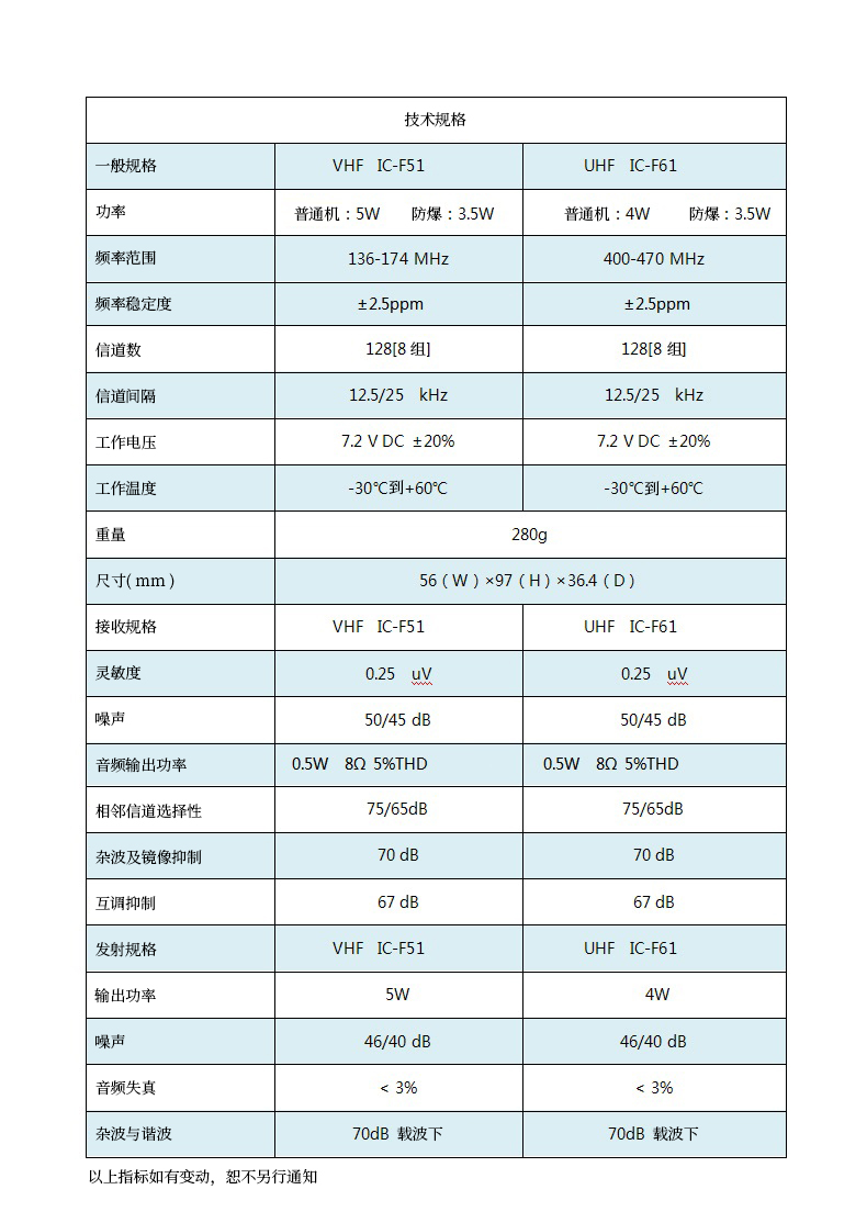 您當前的位置: 首頁 > 產品中心 > (停產)ICOM艾可慕對講機甚高頻海事頻率防水對講IC-F51VHF150mhz