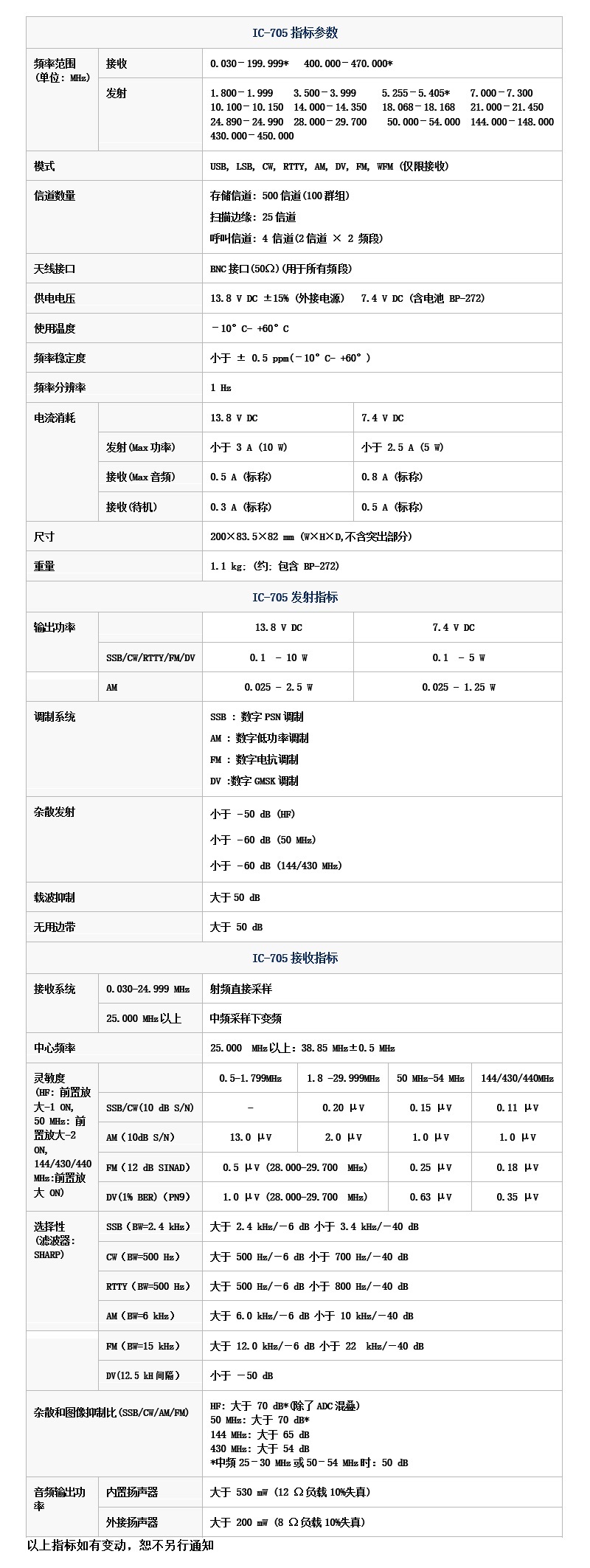 • 產品型號:IC-705