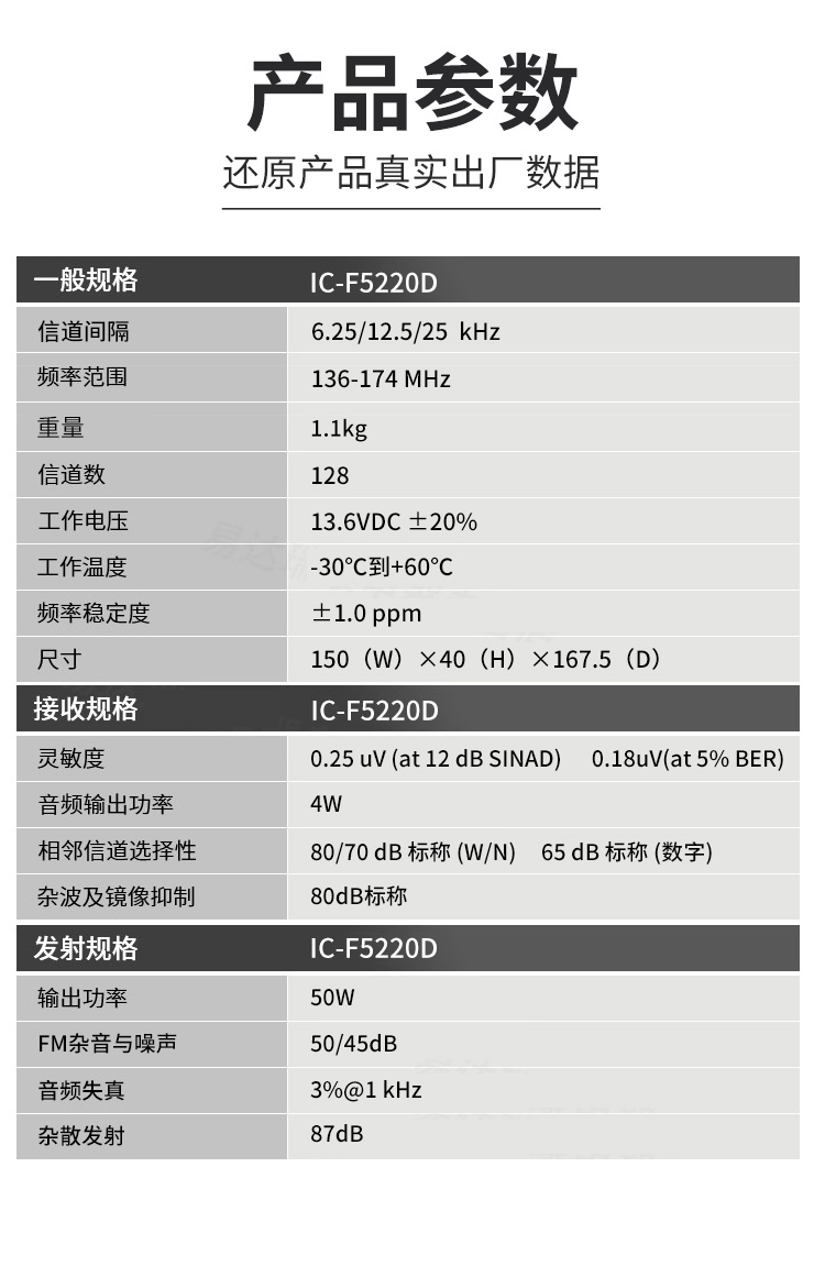 艾可慕ICOM數字電臺數模車載臺VHF IC-F5220D智能系統電臺