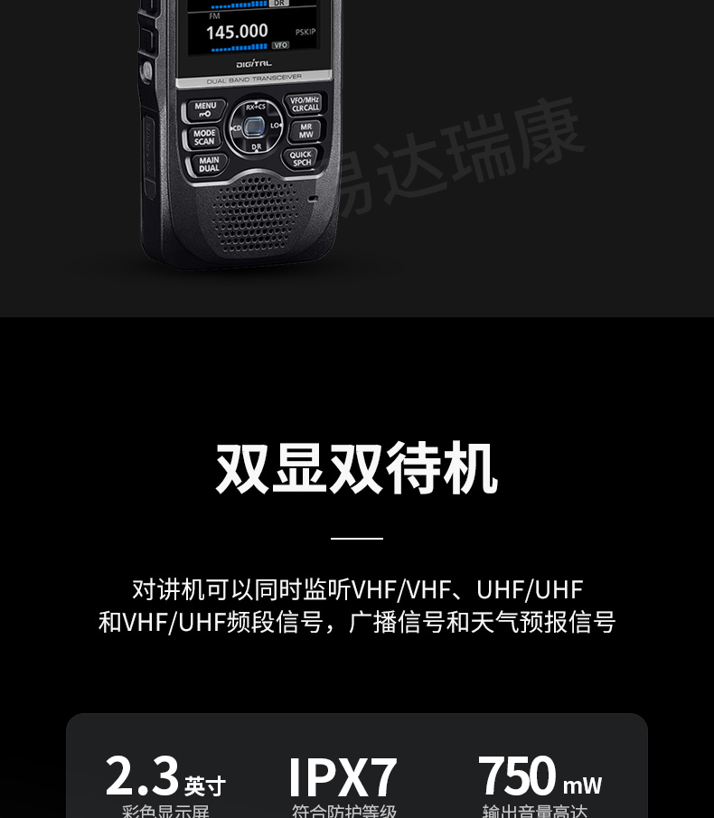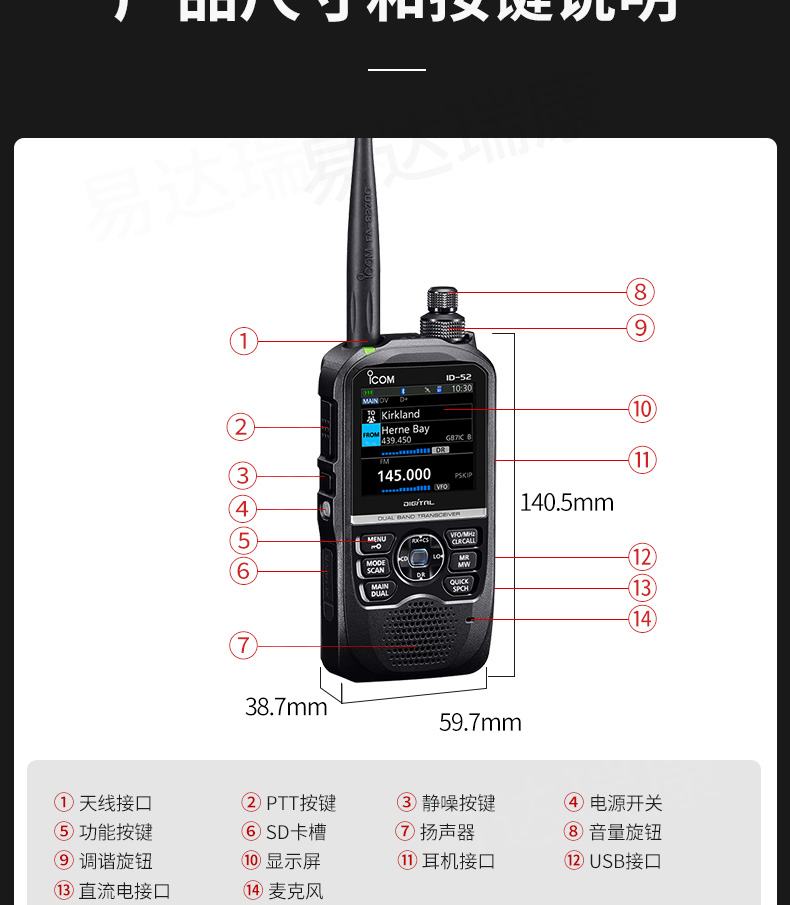 icom艾可慕ID-52E業(yè)余雙待雙顯VHFUHF對(duì)講機(jī)戶外數(shù)模適用