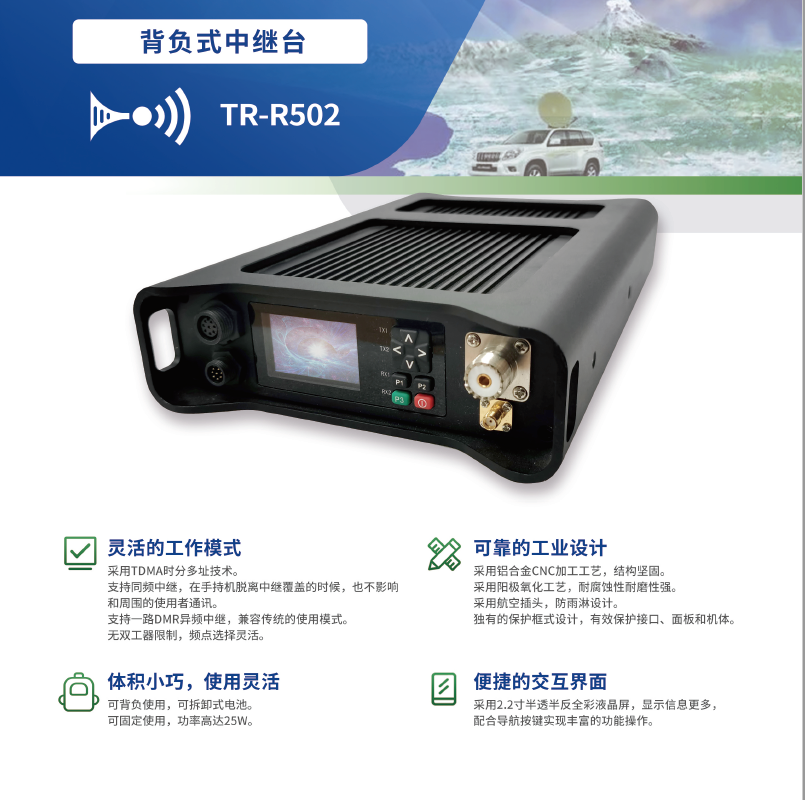 您當前的位置: 首頁 > 產品中心 > 天津712無線通訊背負中繼TR-R502(1)(3)(4)數字模擬中轉電臺對講機設備