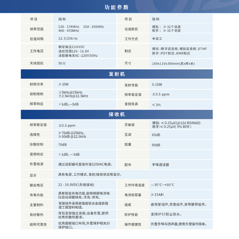 可擴展自組網功能 可拆卸電池 可固定架設,25W輸出 彩色液晶交互界面 IP57防護等級