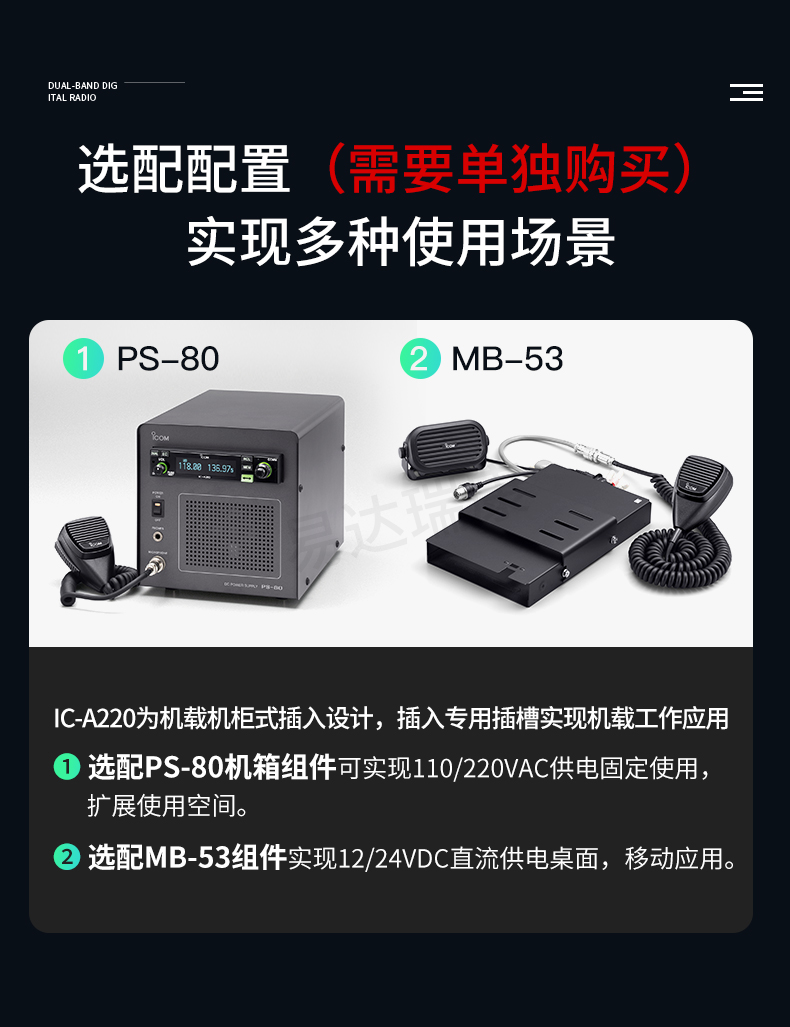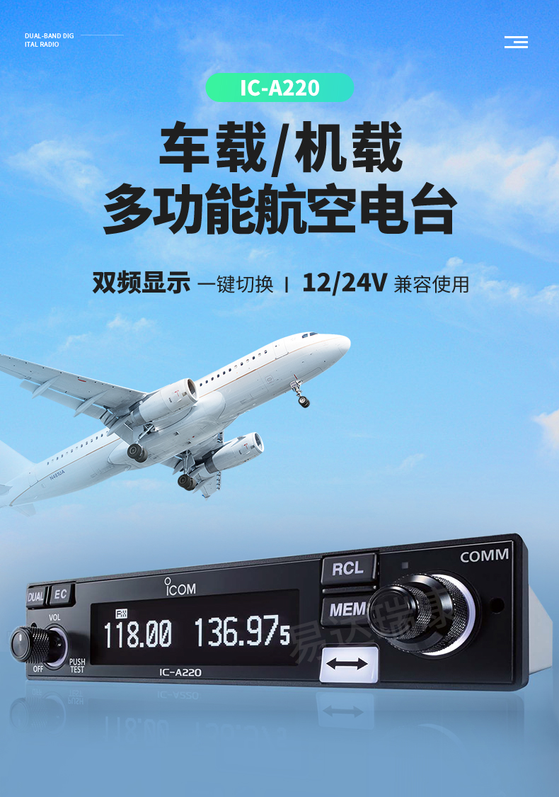 ICOM艾可慕IC-A220航空車載電臺(tái)