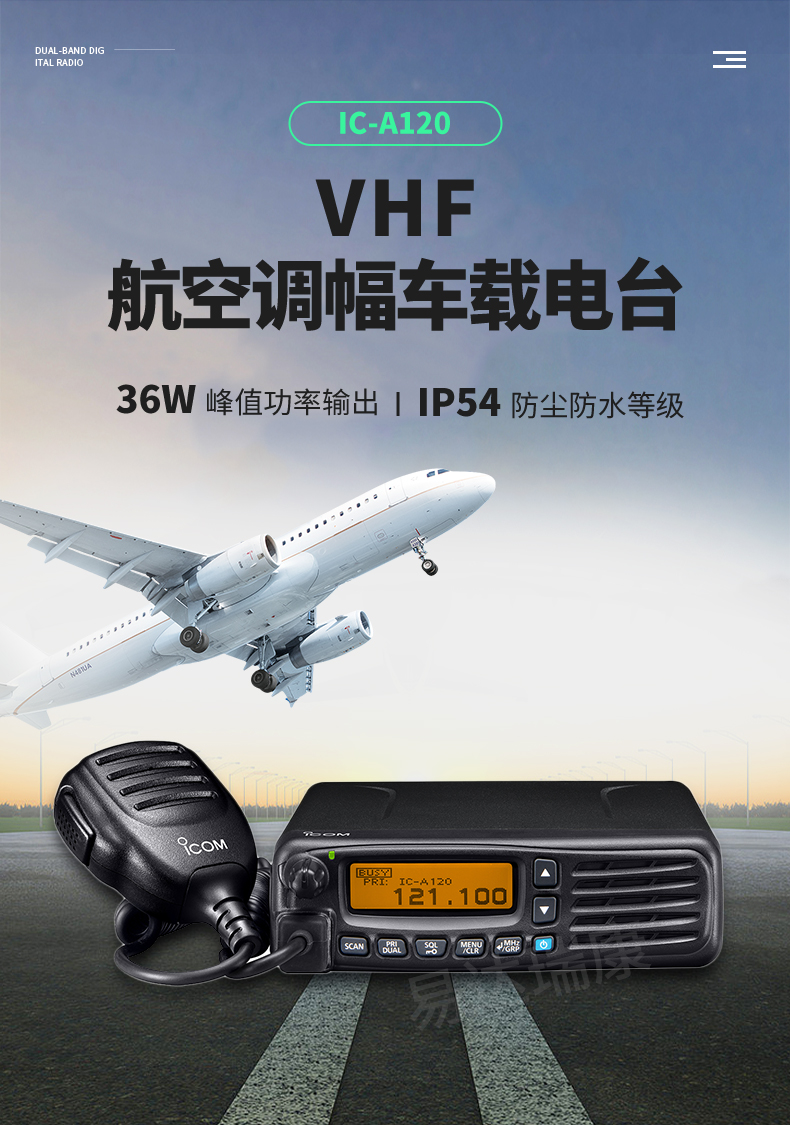 3  IP54  IC-A120此等級防護的航空電臺可以使用在敞篷車輛中。