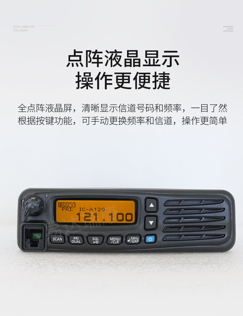 點陣式液晶屏,性能穩定,可以顯示更多信息,可編程操作按鍵,輕松更換頻道和自由編輯頻率。操作簡單,使用容易