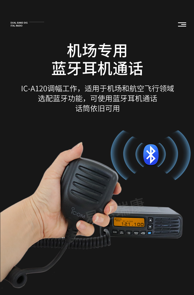 • ANC自動降噪,機場航空用車載臺,可選配藍牙耳機。