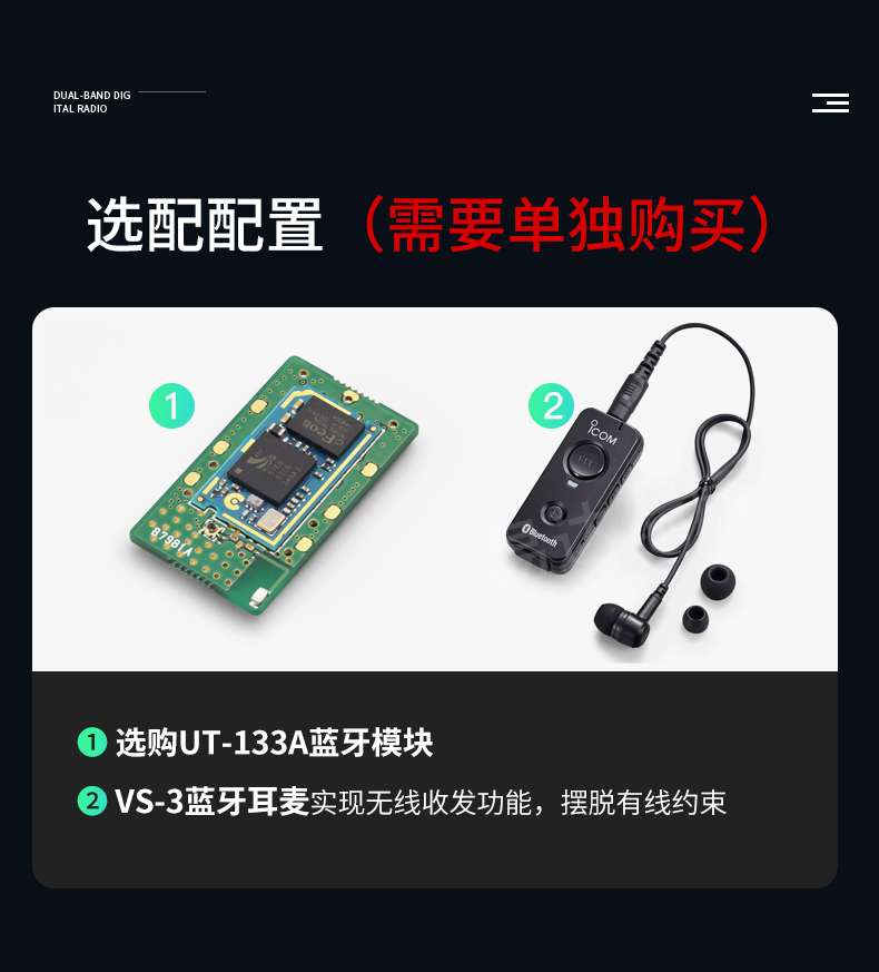 增加選配件,UT-133藍牙單元,可以連接第三方藍牙耳機使用,當然也可以連接VS-3藍牙耳機使用,側音功能可以使用。