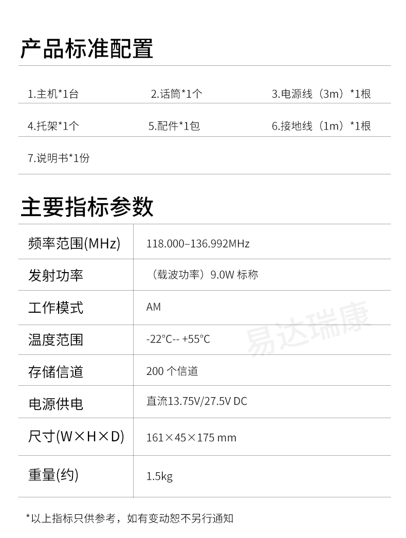 說明:以上條款均以摩托羅拉公司,威泰克斯,艾可慕,健伍公司的有關規定為準。
